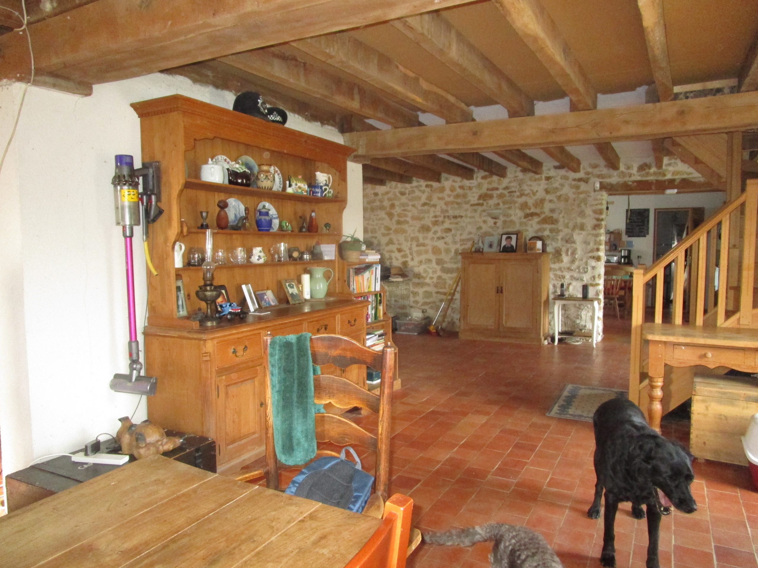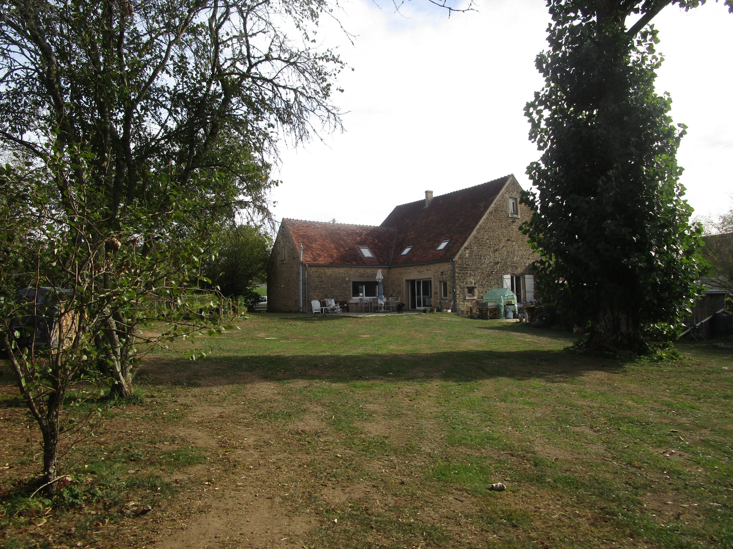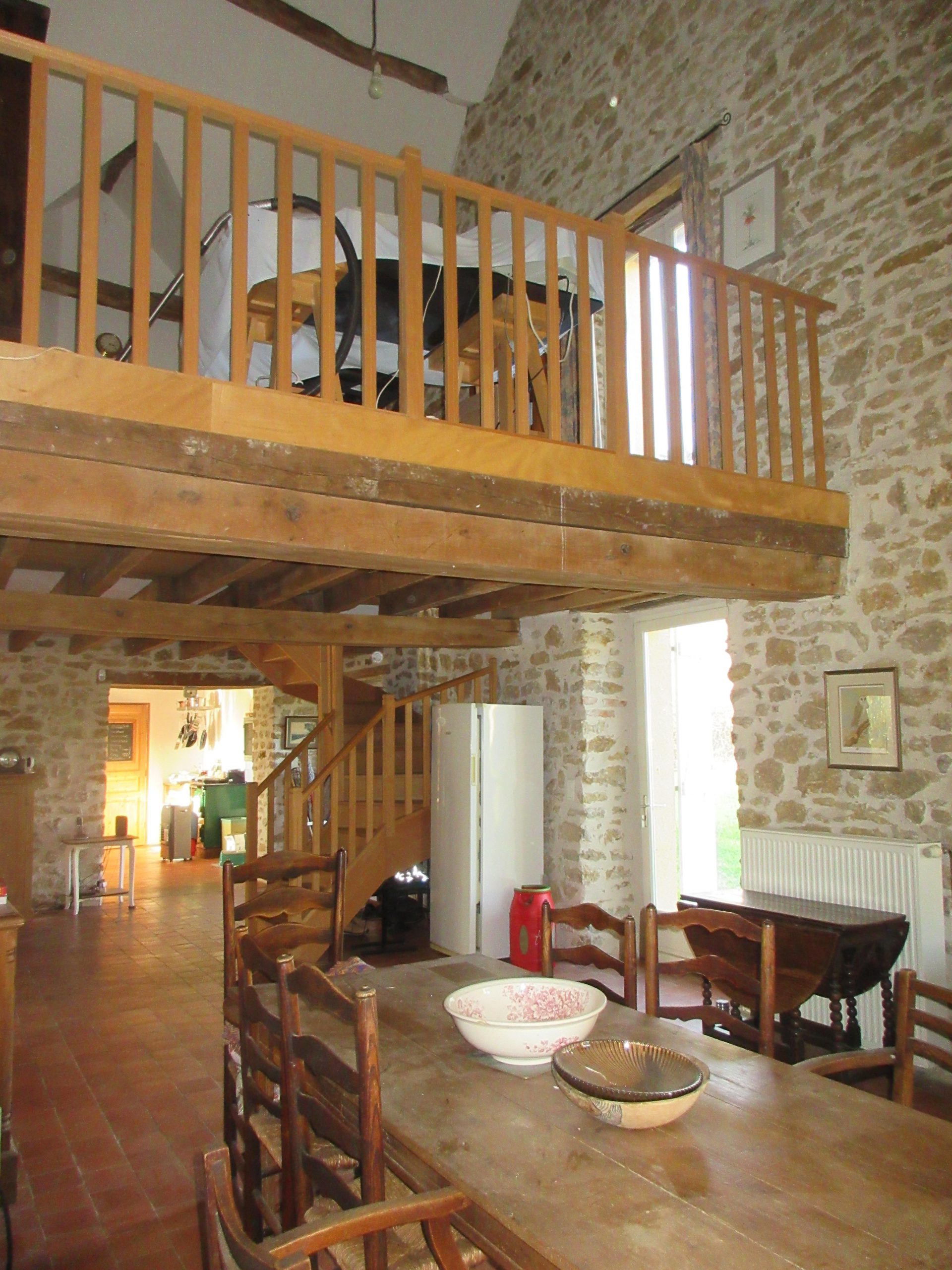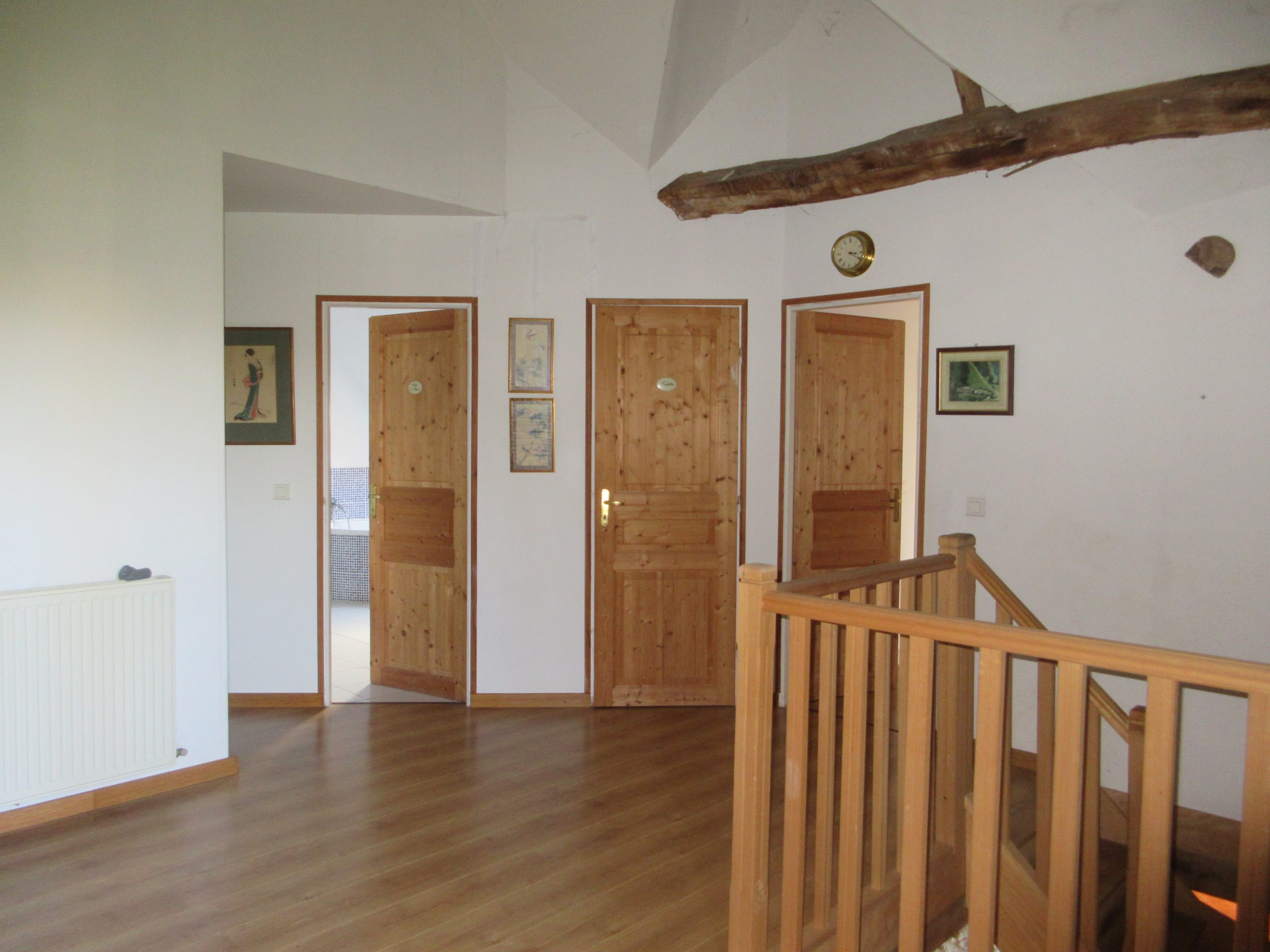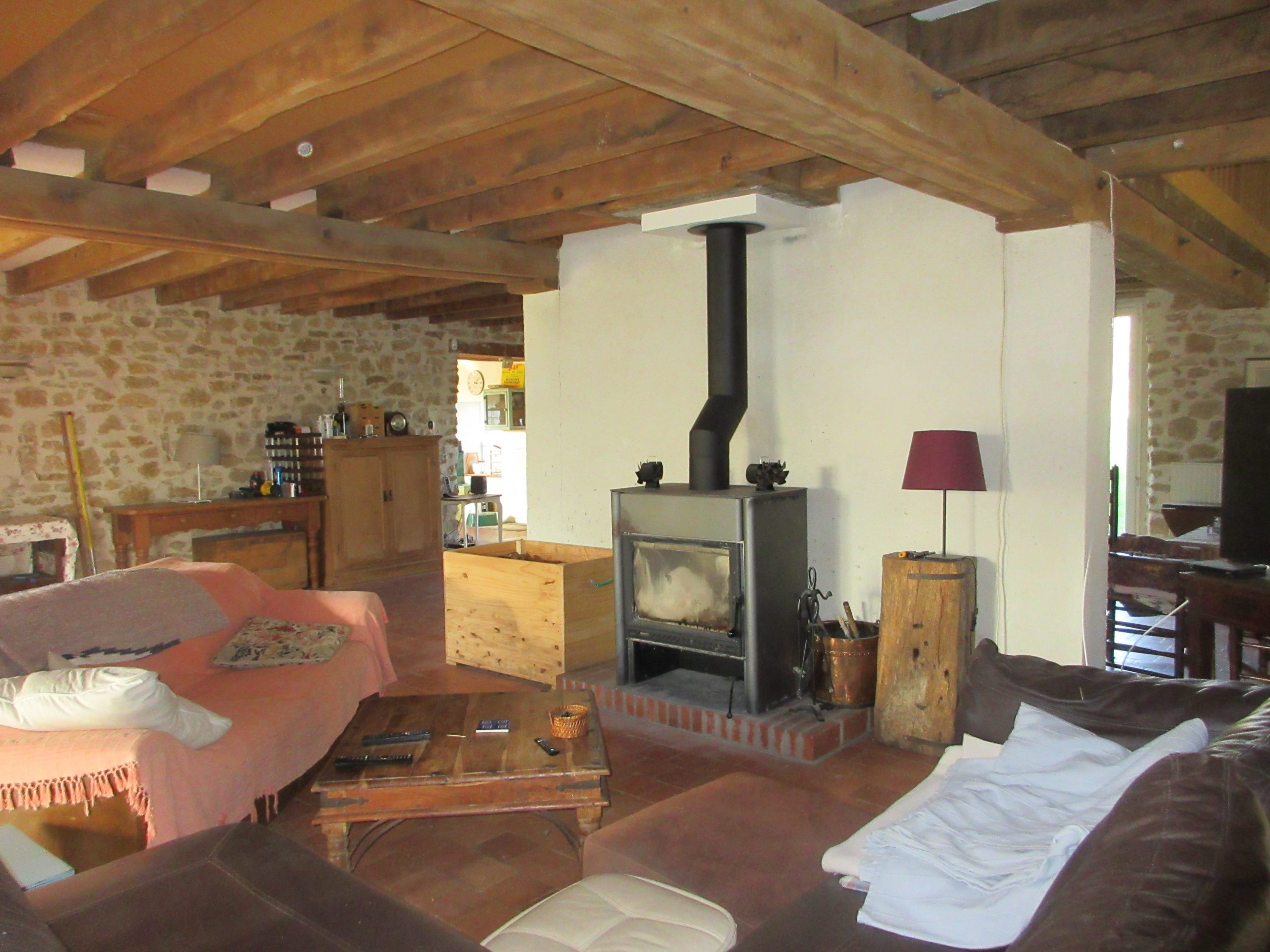 Je suis située dans un hameau tranquille. Je suis une maison lumineuse d’une surface habitable d’environ 294 m². Vous trouvez au rez-de-chaussée : une vaste pièce de vie avec poêle à bois, poutres apparentes et murs en pierres, qui s’ouvre sur ma cuisine aménagée et équipée offrant une vue splendide sur le jardin, une chaufferie/buanderie et des WC. A l’étage, une mezzanine dessert 4 chambres dont une avec sa salle d’eau, une salle de bains et un bureau. Mon jardin est d’environ 2143 m² vous propose une terrasse, un potager et un grand abri de jardin.